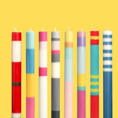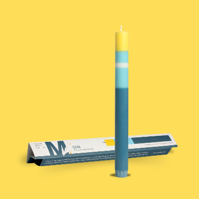 Jede Kerze ist einzeln in farbiger Kartonage verpackt. Die vegane Kerze aus durchgefärbtem Wachs wird sorgfältig Schicht für Schicht von Hand gegossen. Die Verpackungen sind klimaneutral in Hamburg auf FSC-zertifiziertem Designpapier gedruckt und verarbeitet.