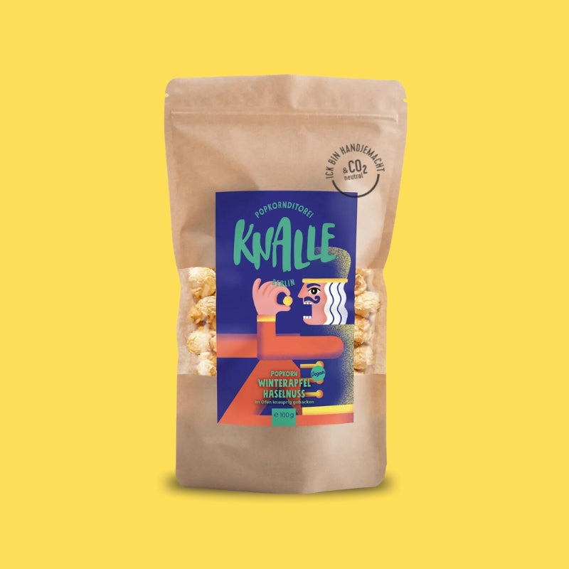 • Knalle Popcorn Winterapfel & Haselnuss: Knuspriges, handgemachtes Popcorn klimaneutral produziert und in sozialen Einrichtungen verpackt – der perfekte Snack für gemütliche Abende.