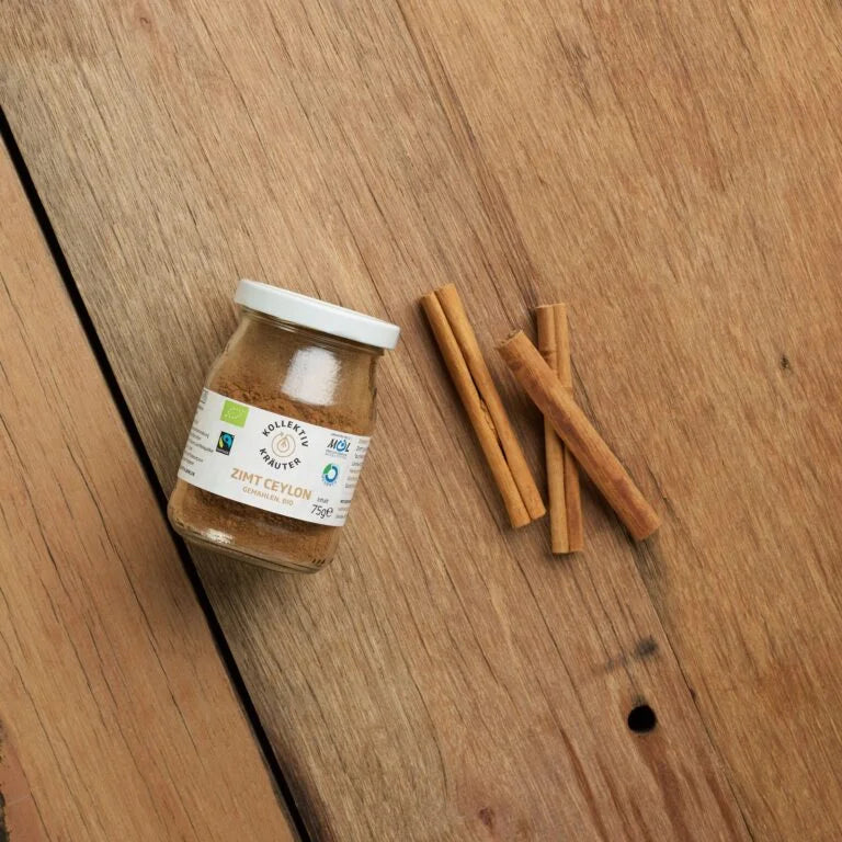 Den Fairtrade zertifizierten Bio-Zimt Ceylon aus Madagaskar beziehen wir von Karma Kollektiv. Die Zimtbäume werden von der Bauernkooperative Mitsinjo angebaut und gedeihen in Mischwäldern, was nicht nur zur Bewahrung der natürlichen Ressourcen beiträgt, sondern den Zimt auch besonders aromatisch macht.